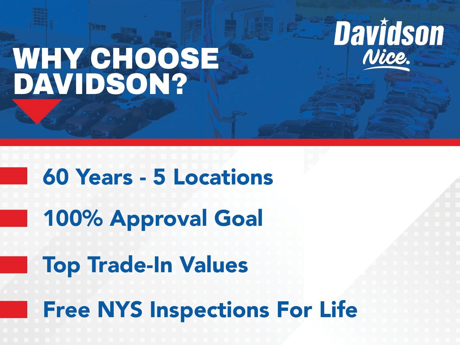 Davidson Chevrolet of Watertown, NY is your premier destination for new Chevrolet vehicles, including top models like the Silverado 1500, Equinox, and Traverse. We also offer a wide variety of certified pre-owned and used cars, trucks, and SUVs to suit every need. Our dealership provides expert Chevy service, genuine GM parts, and affordable financing and lease options tailored to you. Whether you're buying or servicing your vehicle, Davidson Chevrolet delivers trusted, hometown service in Watertown and the surrounding areas.