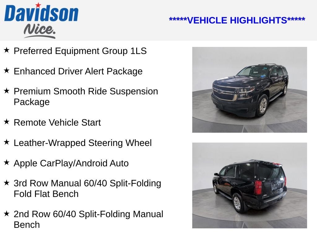 This 2020 Chevrolet Tahoe LS is a certified pre-owned vehicle, giving you the peace of mind of a thorough inspection and comprehensive warranty coverage. With low mileage and a sleek black exterior, this Tahoe LS is a standout choice that will elevate your driving experience.