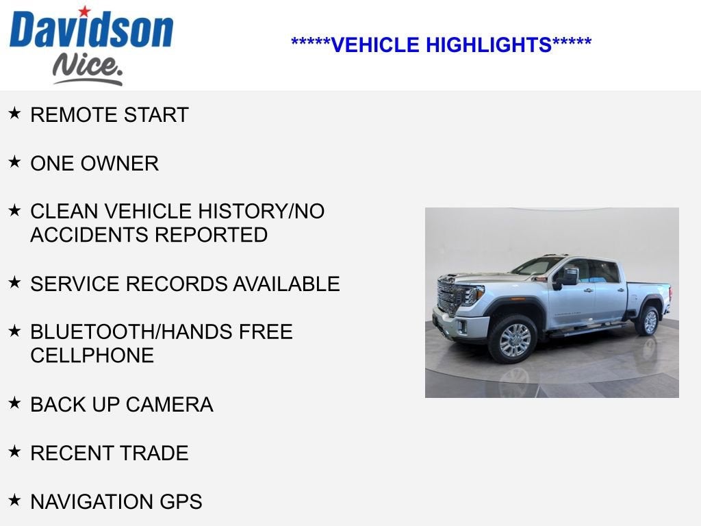 REMOTE START, ONE OWNER, CLEAN VEHICLE HISTORY/NO ACCIDENTS REPORTED, SERVICE RECORDS AVAILABLE, Bluetooth®/HANDS FREE CELLPHONE, BACK UP CAMERA, RECENT TRADE, NAVIGATION GPS, REMAINDER OF FACTORY WARRANTY, FRESH OIL CHANGE, FULLY DETAILED, 4X4, 10-Speed Automatic, 4WD, Jet Black Leather, 10-Way Power Driver Seat Adjuster w/Lumbar, 10-Way Power Passenger Seat Adjuster w/Lumbar, 12-Volt Rear Auxiliary Power Outlet, 120-Volt Bed Mounted Power Outlet, 120-Volt Instrument Panel Power Outlet, 2 USB Ports, 2 USB Ports (1st Row), 2-Speed Active Transfer Case, 220 Amps Alternator, 2nd Row Dual USB Charge-Only Ports, 6 Rectangular Chromed Tubular Assist Steps, All-Weather Floor Liners (LPO), Automatic Emergency Braking, Bed View Camera w/2 Trailer Camera Provisions, Black Front & Rear Molded Splash Guards (LPO), Bose Premium 7 Speaker Sound System, Compass Located In Instrument Cluster, Deep-Tinted Glass, Denali Ultimate Package, Driver Alert Package I, Driver Alert Package II, Electric Rear-Window Defogger, Electrical Lock Control Steering Column, Floor-Mounted Center Console, Following Distance Indicator, Forward Collision Alert, Front Chrome Recovery Hooks, GMC Protection Package (LPO), HD Surround Vision w/2 Trailer View Camera Provisions, Heated & Ventilated Front Bucket Seats, Heated door mirrors, Heated Driver & Front Outboard Passenger Seats, Heated steering wheel, Integrated Trailer Brake Controller, IntelliBeam Automatic High Beam On/Off, Keyless Open & Start, Lane Change Alert w/Side Blind Zone Alert, Lane Departure Warning System, LED Cargo Area Lighting, LED Smoked Amber Roof Marker Lamps, Manual Tilt-Wheel/Telescoping Steering Column, Navigation System, OnStar & GMC Connected Services Capable, Polished Exhaust Tip, Power Door Locks, Power Front Passenger Windows w/Express Up/Down, Power Rear Windows w/Express Down, Power Sliding Rear Window w/Defogger, Power Sunroof, Power Windows w/Driver Express Up/Down, Preferred Equipment Group 5SA, Radio: AM/FM w/Prem GMC Infotainment System & Navi, Rear Cross Traffic Alert, Rear Wheelhouse Liners, Remote Vehicle Starter System, Safety Alert Seat, Signature Denali Grille, SiriusXM w/360L, Snow Plow Prep/Camper Package, Spray-On Pickup Box Bed Liner w/Denali Logo, Steering Wheel Audio Controls, Technology Package, Unauthorized Entry Theft-Deterrent System, Universal Home Remote, Wireless Charging, Wireless Phone Projection, X31 Off-Road Package. 2022 GMC Sierra 2500HD Denali 4WD Odometer is 13543 miles below market average! Quicksilver Metallic 10-Speed Automatic Duramax 6.6L V8 Turbodiesel