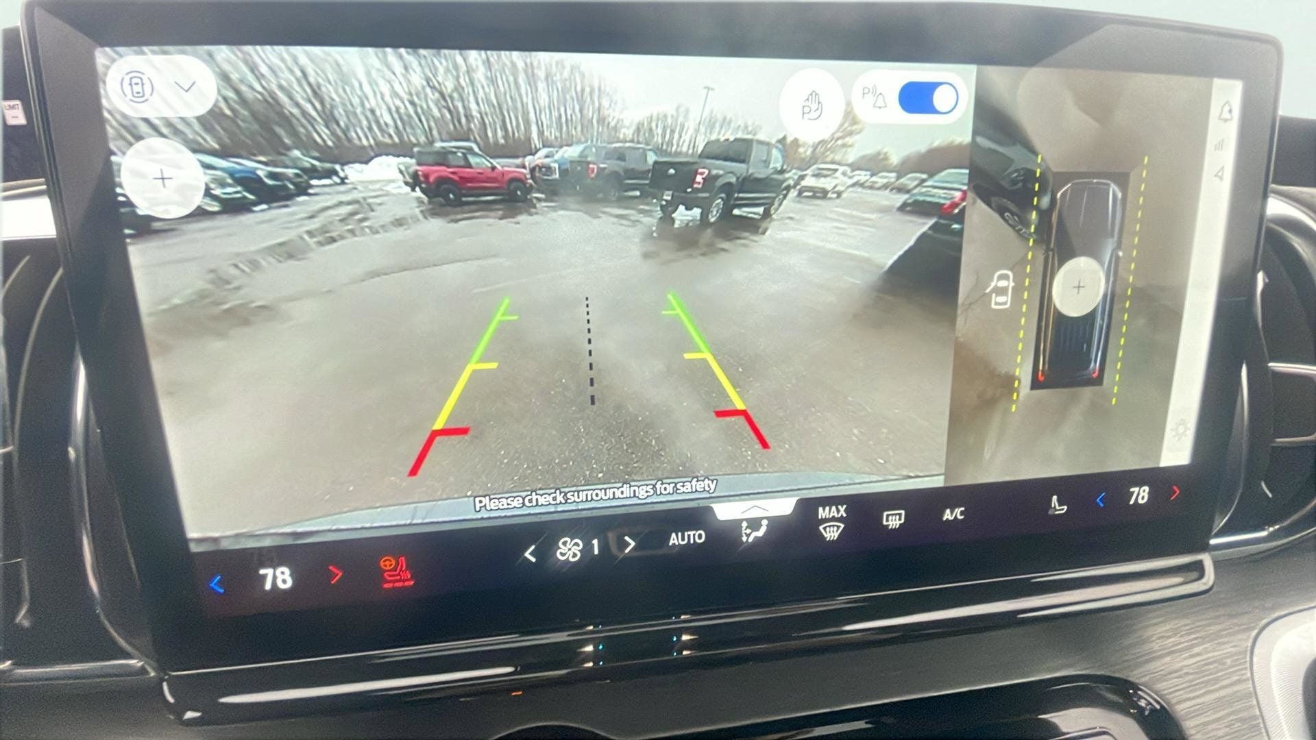Slip into the luxurious Heated & Ventilated Leather Front Captain's Chairs and let the Genuine Wood dashboard and door panel inserts transport you to a realm of unrivaled sophistication. The Power Moonroof and 2nd Row Power-Folding Captain's Chairs add a touch of elegance, while the Connectivity Package and BlueCruise Equipped (1-Year Plan) keep you seamlessly connected and in command.